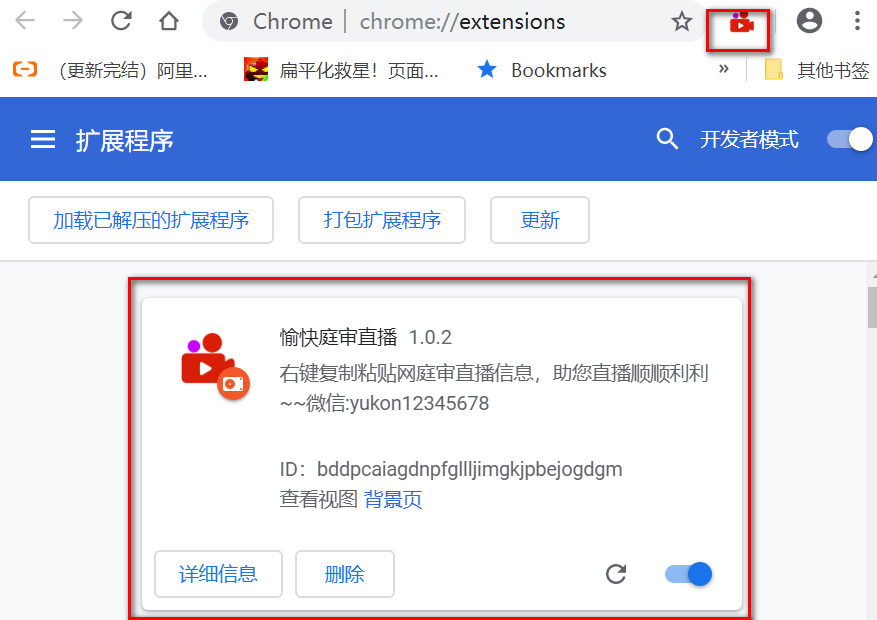 如有需要更新版本、功能,右击右上角的图标,选择“从chrome中删除”,按[二、安装扩展]的步骤重新安装即可。